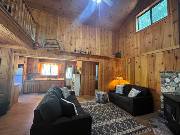 2bedroom 1 bath off grid cabin for rent on 6 acres garden space avail . Above snow line email for more information .