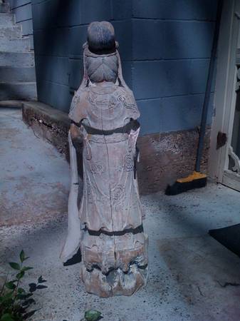 Intricately hand carved wooden statue, 35.5" tall. Looks much better than pics show. Has been unofficially appraised at $2500-$3000. Reduced again to $2000 OBO. Call or email, no cell phone.