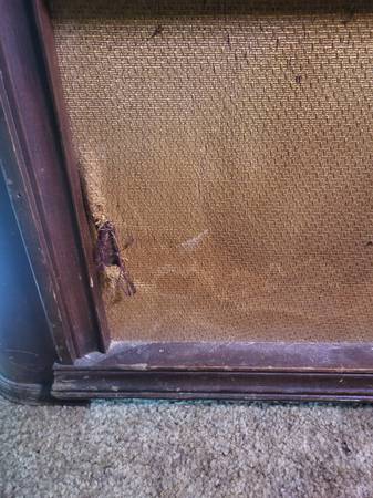 Zenith model 6RO87 AM console radio with 78 rpm phonograph/record changer, 10 or 12 inch records, built in 1946. Does NOT currently work when plugged in, not sure why. Not a terrible looking antique, has missing knobs, a few scratches and dings and needs new grill cloth but have no idea what it will take to get it in working order.