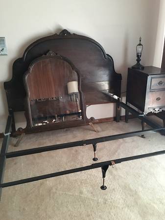 Antique Bedroom Set Bed headboard and footboard. 2 night stands. dresser with mirror large standing dresser
