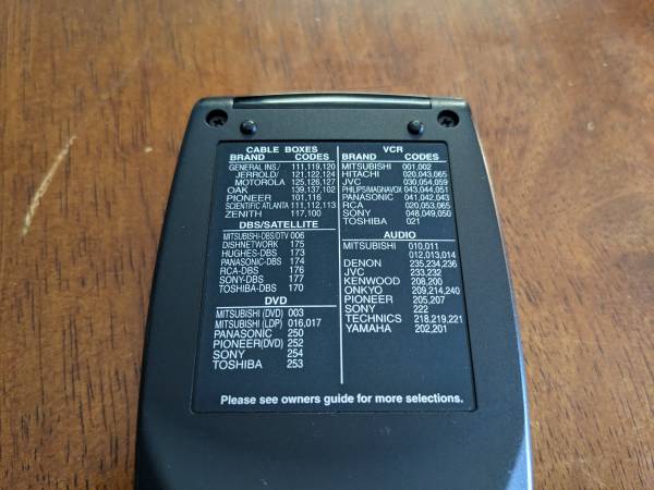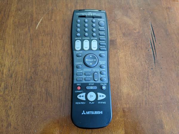 Mitsubishi 290P106A10 universal remote that can work with Cable boxes, Satellite, DVD, VCR, and Audio.