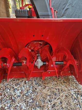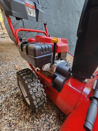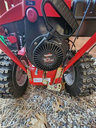 Troy Bilt 28" two-stage snow thrower with 10hp 4-cycle Tecumseh engine. Purchased new and never used. Sat for several years. Had carburetor replaced and changed oil. Runs perfect. $750 Can deliver...