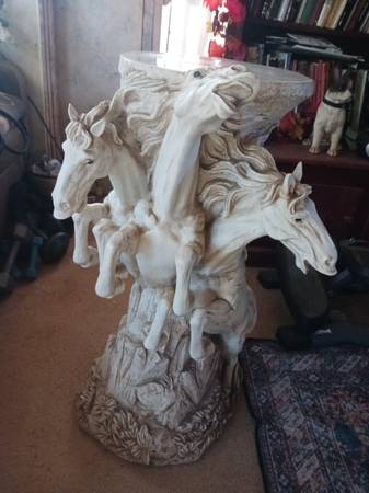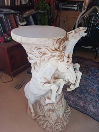 Unique stallion table. Great Condition. 32 inches tall, table top 13 inches.
