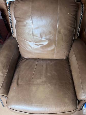 -leather recliner: good condition, no large tears. There are kitten claw pokes on one arm (see pics)