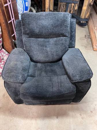 -Blue/Gray recliner: Walmart special, some wear depression, no rips/tears/ or tags.