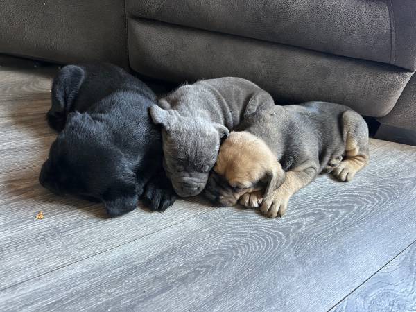 Female corso pups 4 months basic training sit stay down leave it and eat when told ok also kennel trained and familiar with walking on leash very intelligent I have hand raised them since birth from whelping and desensitizing with textures sounds making them confident and comfortable with taking on obstacles put in there paths
