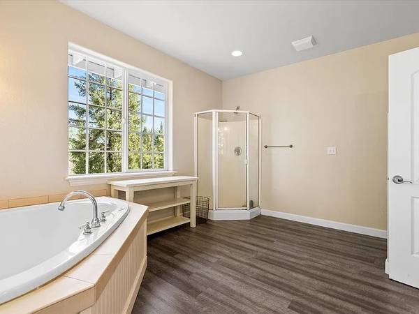 Master bedroom available in 3 bedroom, 3 story house. Bedroom is huge and has a separate tub and shower with beautiful views. Outside parking. 10 minute drive from downtown Grass Valley up Greenhorn.
