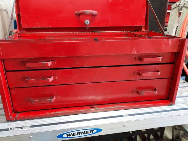 This "Top Box" toolbox is a nice condition for 70+ years old